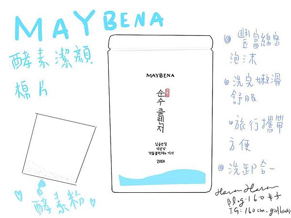 來自韓國的【MAYBENA】酵素潔顏棉片一片就能輕鬆卸妝及洗臉